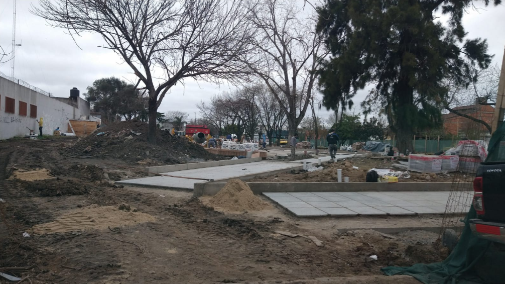 Conjuntamente con la colocación de las baldosas, se está terminando la nivelación de tierra y el nuevo sector de juegos.
