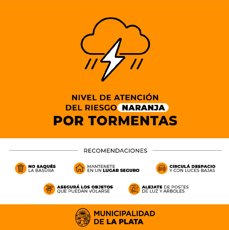 ALERTA NARANJA POR TORMENTAS EN LA PLATA: ADVIERTEN LLUVIAS INTENSAS Y RÁFAGAS